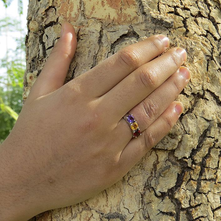 Another classic and elegant design in our birthstone collection is our Trio ring. Three gemstones next to each other embedded on the strong yet sleek base makes it perfect for a day to day office wear.