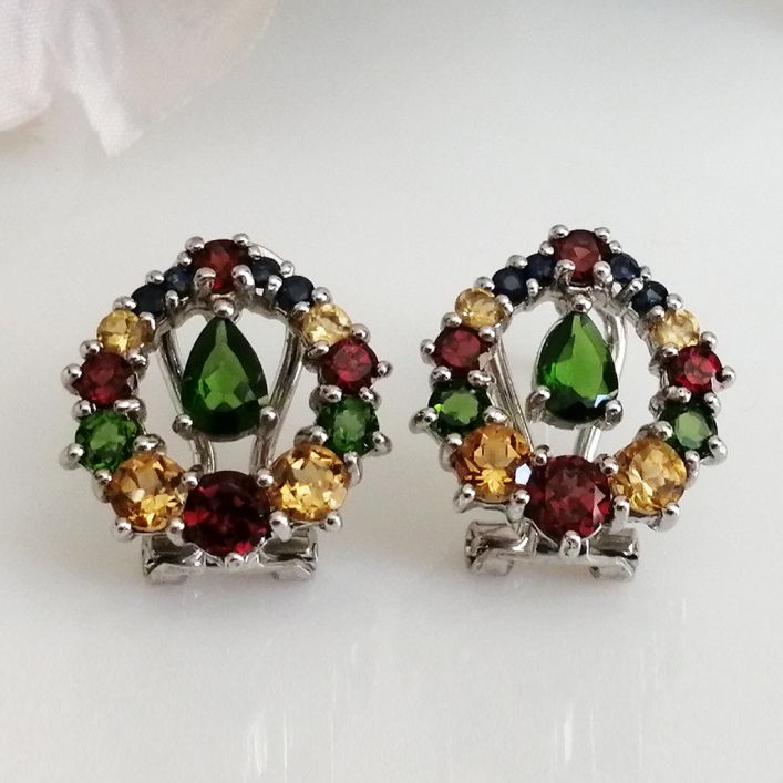 Jazz up your morning to night look with these Flashy Studs from our Elite collection. Made with multicoloured authentic gemstones like Emerald, Blue Sapphire, Citrine, and Garnet are set in pure 925 silver, these earrings are sure to get heads turned when worn.
