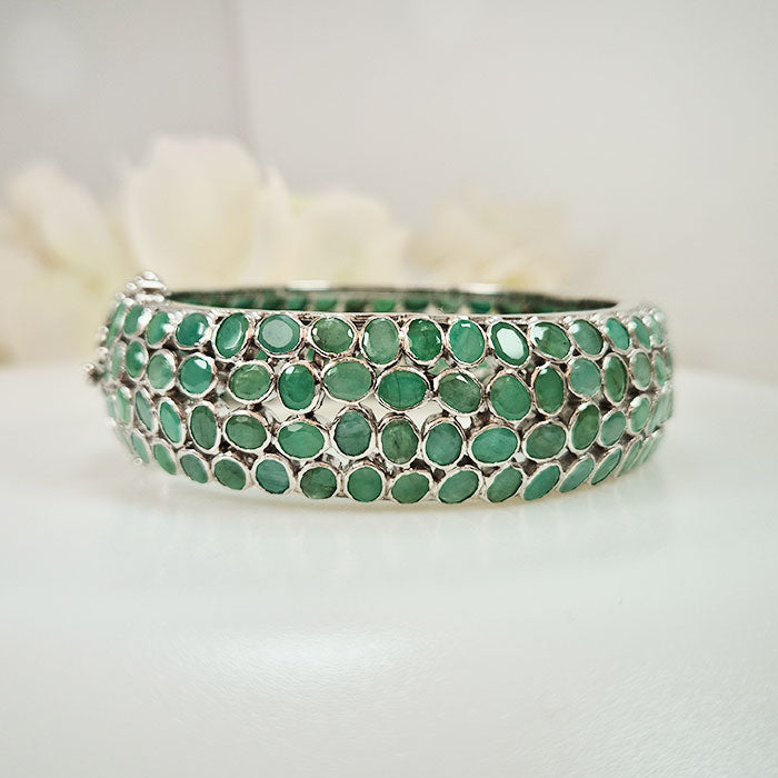 Step into the world of luxury and elegance with our Emerald Kada, where every facet tells a story of craftsmanship and opulence. This masterpiece is crafted in high-quality silver and adorned with a breathtaking array of emeralds.