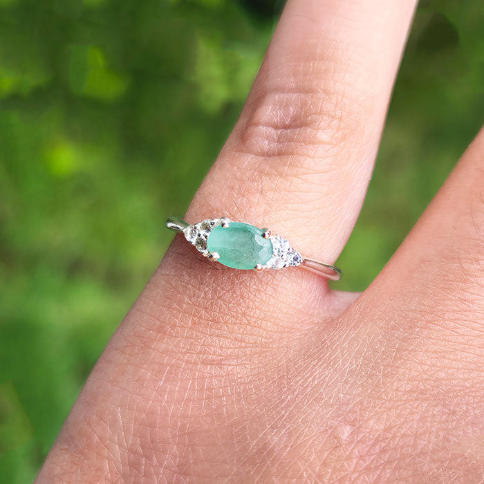 Adorned with such a Emerald Ring in high quality silver, one exudes confidence and elegance, capturing the spotlight and leaving a lasting impression with every gesture. it is a symbol of style and sophistication, perfect for enhancing any evening attire.