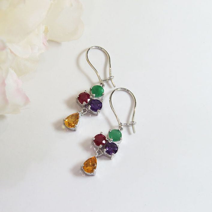 The essence of these beautiful Birthstone Spring Earrings is that the design is focused only on the round colourful gemstones that are set in a mistletoe cherry manner. These round gems can be your birthstone or you can have them all different, which would not only give them its multi colour but also make it look more appealing. Plus you can team it up with all kinds of attire.
